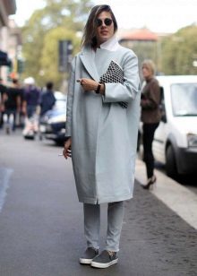 Oversize coat. This name has a coat due to its cut. Coat models can be straight cut or slightly fitted. But the main thing is that as a result a more “blurred” image is created that does not highlight the shape of the figure. Such a coat today is worn by women of different ages and complexions.