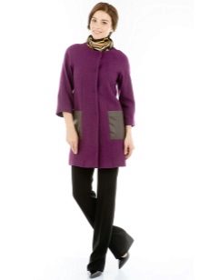 For sewing a coat of this style, woolen pile fabrics are used, models are sewn with a lining. Basically, you can see a coat of this style from checkered materials from wool. It is most convenient to wear a coat for jeans or sweatpants.