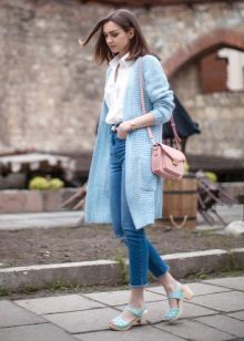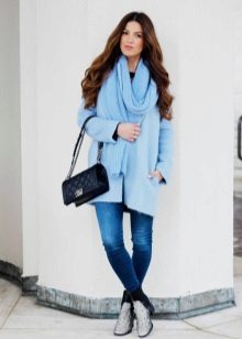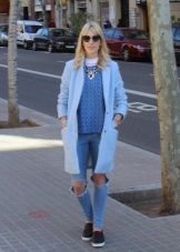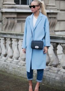 A blue coat can be combined with different elements of the wardrobe, creating irresistible and stylish bows in different styles.