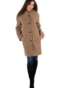 The Empire Coat online store has a large assortment of models for obese women. Trapezoidal insulated cashmere coats are popular, which perfectly hide all the flaws.