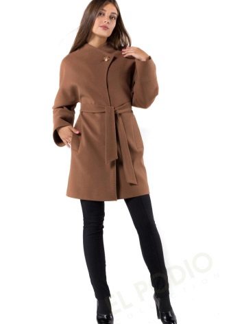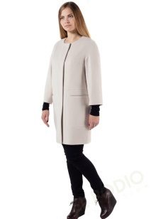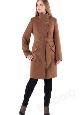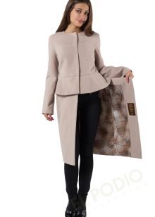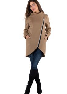 Modern fashionistas will be pleased with coats tailored based on a rocker jacket-jackets. They have a slanting fastener and a stand-up collar fastened with two buttons. Even if you are locked in a boring office suit, a stylish coat will allow you to show your rebellious nature.