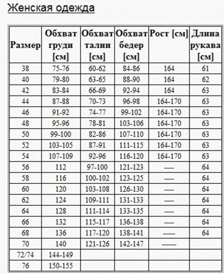 The Empire Coat has been offering outerwear for many years to the fair sex of any height and weight. The dimensional grid looks very impressive: