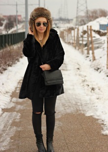 Long coats of classic colors from a sheared mouton with a stand-up collar (protecting the neck from drafts and wind) look rather harmonious on fashionistas, and create a vintage and original look.