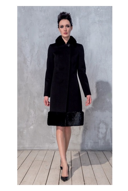 - monophonic coats of universal black color, attracting attention with their brilliance and allowing combining shoes and accessories of any tones with this outerwear;