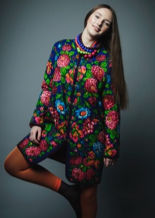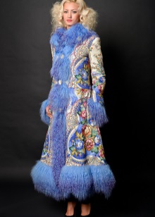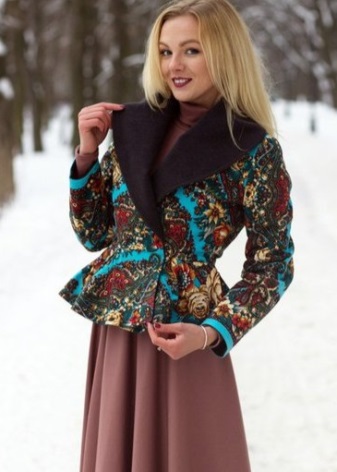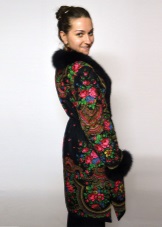 Clothing with Pavloposad patterns has always remained popular. But if earlier this applied mainly to shawls, now the coats come out in the first place.