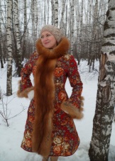 The most successful coat option from Pavloposad shawls are models with fur trim. Such clothes look expensive, chic, exclusive. A coat with natural fur deserves attention, because the artificial finish will look against the background of the rich pattern of the poor and inexpressive. Mink, rabbit, arctic fox, fox - any of these furs is used to create similar coats. Coats in the form of a poncho with fur or fringe are now very popular.