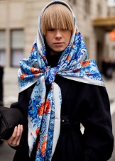 - Having thrown a scarf over the head with a fold to the forehead, you need to fix it with a brooch or wrap the ends around the neck and make a knot in front.