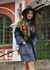Do not exclude dresses from the list of possible clothes, which can be combined with a coat of Pavloposad shawls. The most successful options are dresses of direct style and models with an A-silhouette.