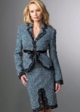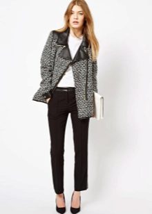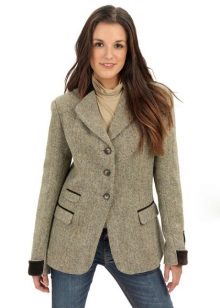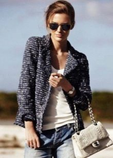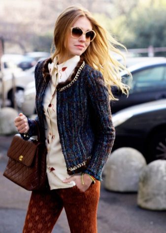 Tweed goes well with different fabrics, so leather and suede pieces are often used to decorate clothes. Usually placed on elbows or clasps.