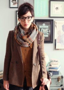You can tie a large knit scarf on the neck, chosen in the color of basic clothes or in contrast. Each dress is suitable for a short dress or a floor-length knitted skirt. Dresses of simple cut of silk and chiffon will suit the style of urban chic.