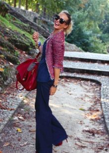 Tweed is made of a dense woolen sheep thread, which is easy to distinguish by its fine pile. Thanks to him, the fabric has a cozy look due to softness and heat, and tweed things protect the wearer well from wind and cold.