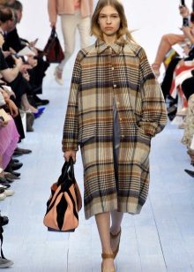 Double-breasted products of a three-dimensional silhouette also remain in fashion. Short sleeves, the length of the coat is just above the knee, in a small cage, with patch pockets. In a coat several colors can be combined at the same time. This fashion trend is called "color blocking".