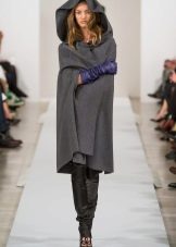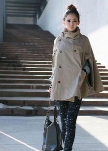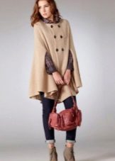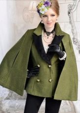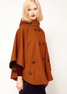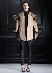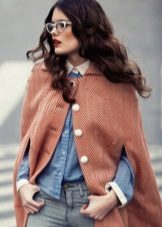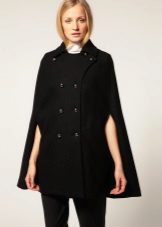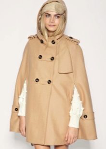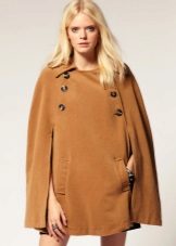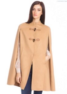 A cape coat is a cape of a trapezoidal style, thanks to which the product has a shoulder line. This distinguishes cape from ordinary shapeless wraps. Despite the fact that such coats are quite loose, they are nevertheless tailored to the figure. They have buttons that run along the entire length. Sometimes a cape is like a traveling cloak of people of the past, when fasteners are present only on the neck, and then it is worn wide open.