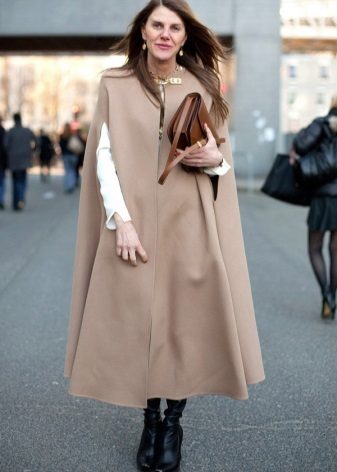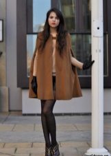 The cape coat can be of different lengths. From the shortest, which go approximately along the line of the hips, to the longest, to the calf muscle. Capes of medium length are also in demand, just above the knees. It is the latter that is the trend of this year.