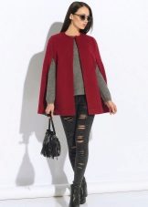 The coat-cape is a demi-season clothing, therefore they sew it from the appropriate materials, most often drapes and six. They allow you to keep warm and protect from the wind. However, for severe frosts, capes are still not suitable, since they have too loose cuts and no sleeves. As for the colors, there are no restrictions: black and gray, white and beige, orange, blue, green. They can also meet a print, for example, animalistic, geometric or ethnic.