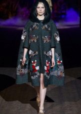 Coat-capes come in different styles: classic sophisticated and in shape, bright and hooligan youth, simple street and casual, elegant chic. Variety is achieved through cut and detail. On capes, there are fur or knitted collars, decorative elements such as embroidery, sewn beads, appliques. Very rarely can one see pockets and belts.