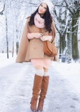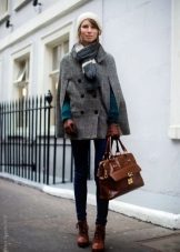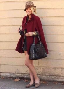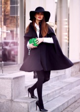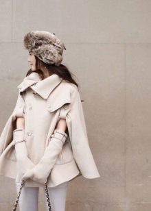However, if you do not want to wear long-sleeved clothes under the cape, you can purchase extra long gloves, then the handles will remain warm. They can be knitted, leather or knitted, and the color should be either in tone with the coat or contrasting. From hats it is better to choose knitted hats and hats, especially with wide brim. With such a coat, you can wear knitted scarves, stoles, silk scarves.