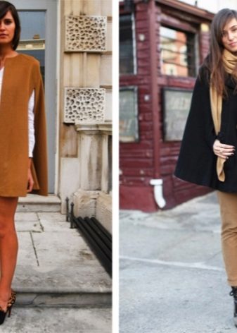 Cape, in turn, due to the traced line of the shoulders more like a coat of loose style. And to do something with your hands in a cap is much easier, because for them there are slots instead of sleeves. Cape is considered to be outerwear intended for autumn and spring, as it is sewn from appropriate warm materials.
