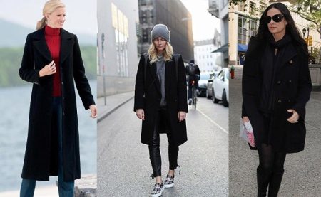 In general, black is not so simple. Even the brightest color solutions lose their expressiveness against a black background. For this reason, many fashionistas combine a black coat with black clothes.