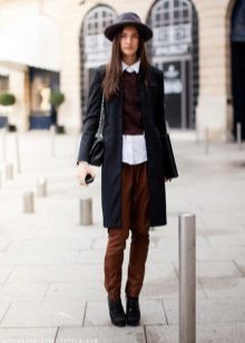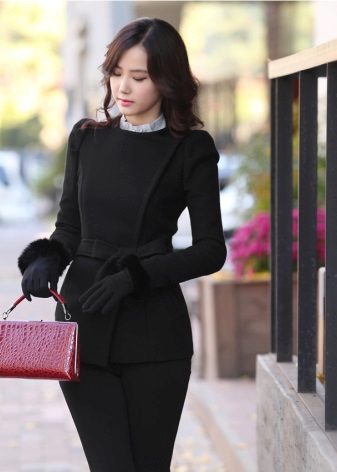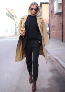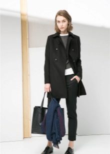 To create a classic look, in which a coat is already present, you can choose trousers, shirts, blouses, turtlenecks, business suits with jackets and jackets.