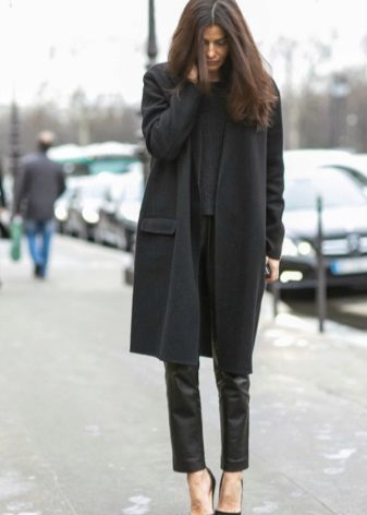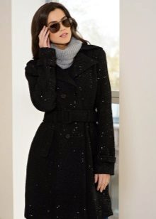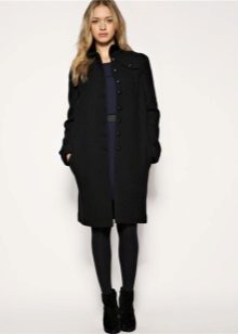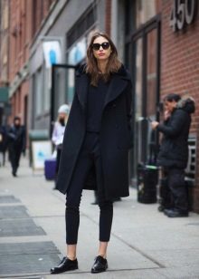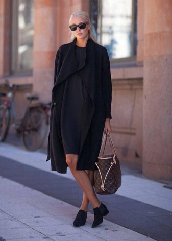 A completely new model appeared in the ranks of classic outerwear, which immediately aroused interest among women. Black color, dense jersey, lack of a collar, which allows you to change the image with the help of scarves, replacing buttons with buttons and sleeves three quarters. This is a completely new look at a classic coat.