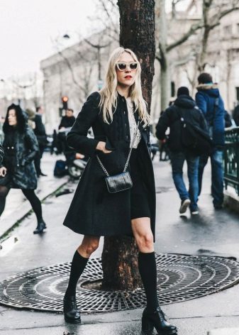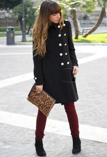 If the image is based on a shortened model of a classic coat, which has the signs of youth fashion, then as an acceptable option, you can consider more recent ideas and vivid images. It can be a long skirt or dress, shorts that look like cropped trousers, skinny dark jeans. Classic allows you to look bright young people.