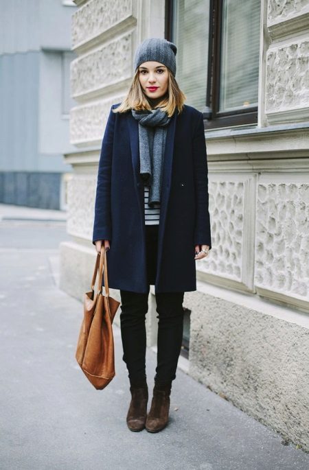 Scarves are becoming more popular and without them it is now rarely when the classic image is dispensed. For a strict coat, it is permissible to choose scarves in bright shades, for example, purple or blue.