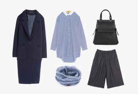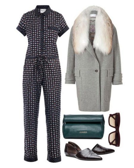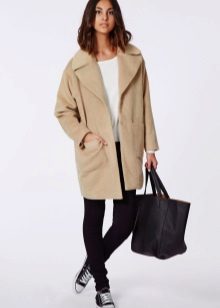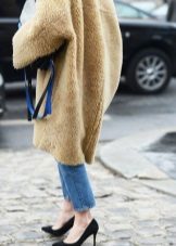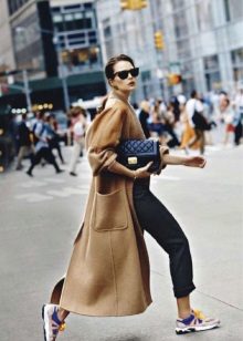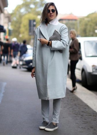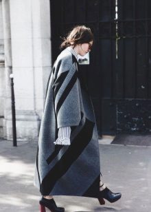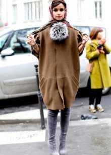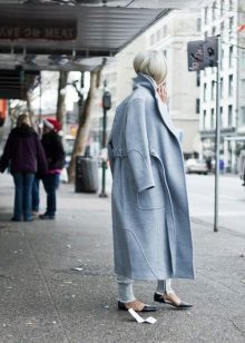 Shoes with flat soles look very stylish. Almost any model of a cocoon coat will look in this combination very relevant and stylish. An ensemble with a cocoon coat with a fur collar will be a particularly elegant option.
