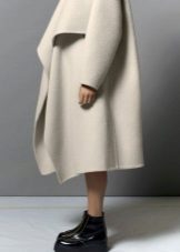 Dozens of trendy coat models differ in the cut of the collar. But the tendency towards minimalism brought to the fact that a modern cocoon is produced without a collar. In its place flaunts a neat rounded or V-shaped neckline.