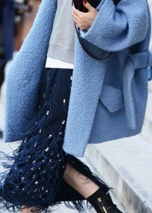 - Up to the knees. A cocoon coat of this length is most often distinguished by a narrower cut. So, the silhouette of the hem resembles the shape of a tulip skirt. This incredibly feminine and seductive variation of the cocoon is probably the most sophisticated.