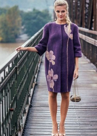 - To the middle of the thigh. The most popular variety of cocoon coats. She is especially in demand among young girls. It is in models of this length that the greatest variety is found in terms of sleeve design.