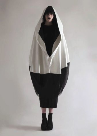 Hats combined with a cocoon coat - wide-brimmed hats, elegant berets. Interesting options are possible with a stole covering the head.