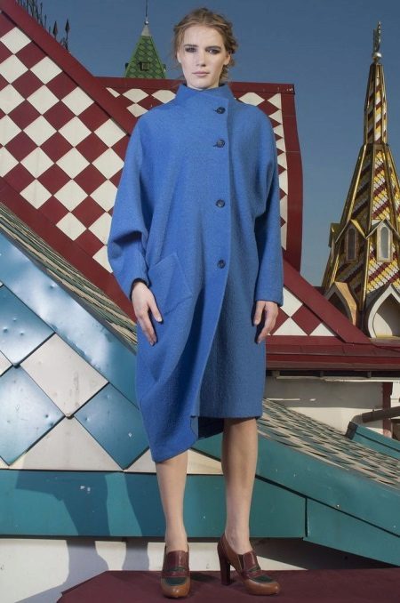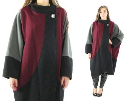 The most relevant material for tailoring modern cocoon coats is wool. A variety of fabrics based on it allow you to create elegant lines of this trendy style. The woolen cocoon coat holds its shape perfectly, has high heat-shielding and excellent aesthetic qualities.