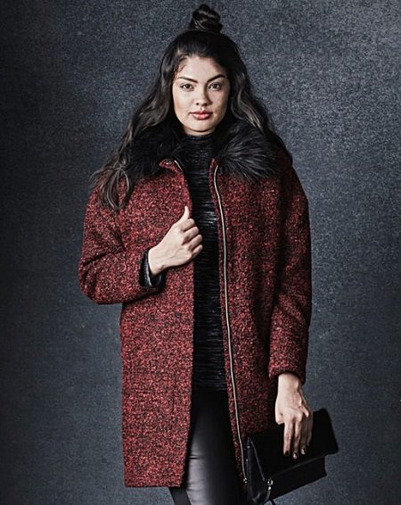 If your beauty does not fit into the notorious “90-60-90” framework, try a coat of stylish style with a slightly narrower cut than thin people wear. So, you will not create visually excess volume, while the graceful lines of the silhouette of the cocoon coat will cover lush hips.