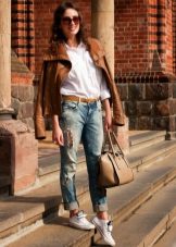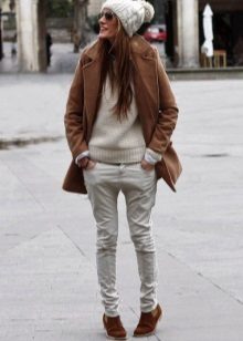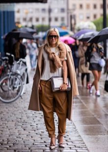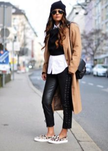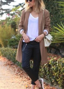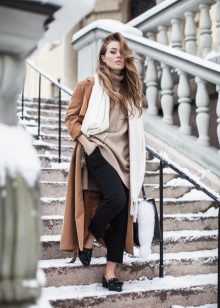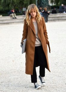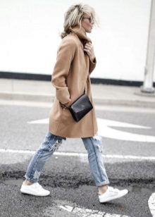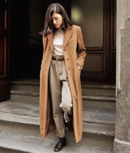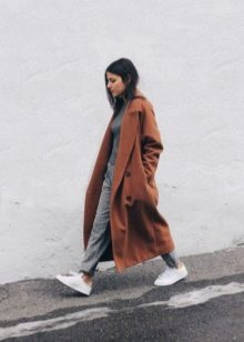 Given the moment that the brown coat nevertheless embodies the classic style, albeit somewhat free, it is worth giving up sports shoes.