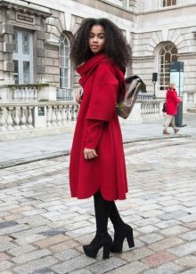 From the standpoint of the color scheme, a correctly selected outfit should not contain more than three colors, since such a look does not look neat and a sense of image integrity is lost. The red coat will dominate, and, accordingly, you need to choose clothes for him in such a color palette that will not replay it, but only emphasize its significance.