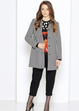 Lovers of more feminine silhouettes should pay attention to a coat of a semi-fit and fit style on the belt. To complement the evening look, a stylish, elegant jacquard coat is sure to suit. The model is made in a classic design and complemented with a turn-down collar with lapels and welt pockets.