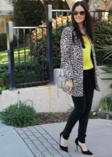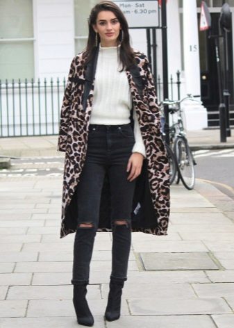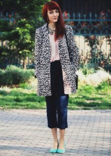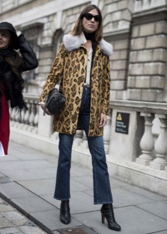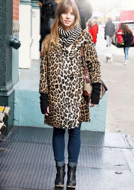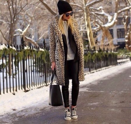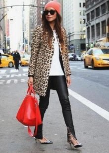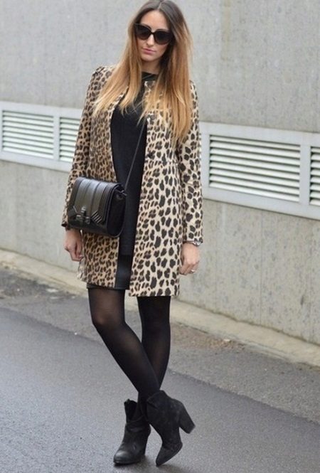 Depending on the length and style of the coat, you can choose long boots and over the knee boots, stilettos, ankle boots, platform shoes. The bag is selected depending on the situation, it can be either an ordinary shopper or an elegant clutch, but there should not be large decorative details on it. If in doubt, you should know that the most universal color for combining with a leopard is black.