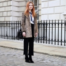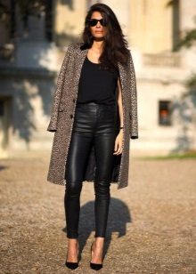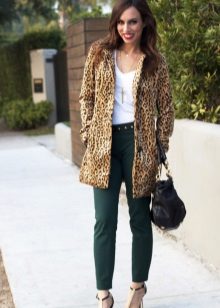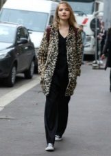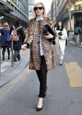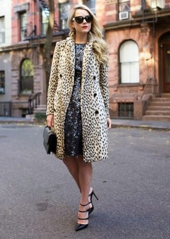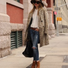 Coats in leopard spots look interesting in combination with leather, silk, wool, velvet fabric. The best colors to combine with a classic leopard are black, brown and its light and dark shades.