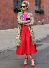 An elegant evening look will be created using a black dress, a silk shirt and trousers. No less luxurious leopard print looks with white and red clothes. This combination will turn out bright and attractive.