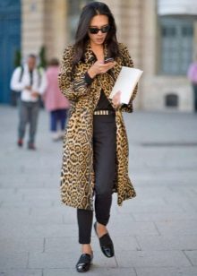 Leopard print is a very bright detail that attracts attention from afar. Therefore, the styles of such coats are often concise, without unnecessary elements.