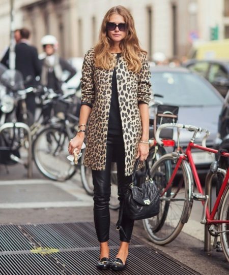 To begin with, it’s worth remembering a few simple rules about creating images with a leopard coat. Since this is a very active coloring, it is best if it is presented in a single version, in this case, only on the coat. You can not combine a leopard with other, not only animalistic, ornaments, for example, floral and geometric. It is best if the clothes, shoes and accessories are plain.