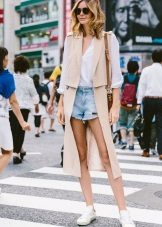 In everyday summer wardrobe there are no special restrictions. A summer coat will look good with various dresses, tops and skirts, cropped trousers, shorts, and jeans. They will complement the image of sandals, mules, slip-on sneakers. As accessories fit stylish glasses, bracelets, earrings.