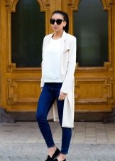 White coat is very popular in the summer. It will easily complement any casual or festive look, it will look good with both jeans and an evening dress.