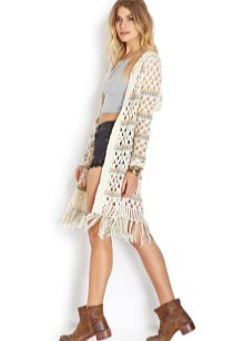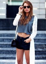 Guipure coats are also found, which are lighter and thinner. They go well with short shorts, ripped jeans, and flying tops.