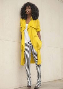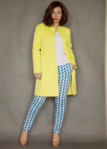 A yellow coat is a self-contained wardrobe item, so it must be very carefully entered into the wardrobe. It is best combined with a neutral color scheme - beige, white and black.