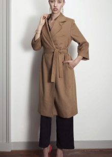 A wraparound coat resembling a bathrobe will make your look light and relaxed.