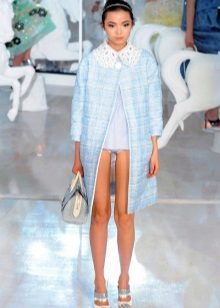 Chanel's summer coat looks like an elongated jacket, invented by the great mademoiselle. Chanel's classic coat is also sewn of their booked wool, has a straight silhouette and a length just above the knee.