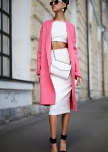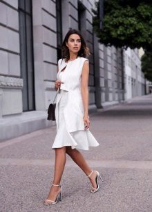 - In the summer, in a business wardrobe, white total look will look great. Midi pencil-length dress, low-heeled sandals, a tough handbag on a long strap and a summer coat. It looks perfect!