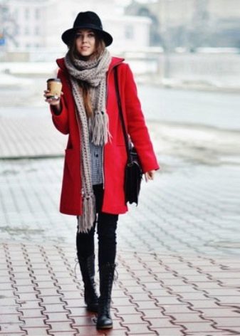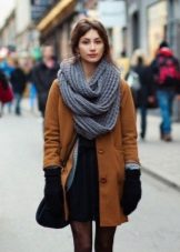 A scarf or stole is another indispensable accessory for a coat. You can pay attention to fringed scarves or massive models of stoles. Snoods are also still relevant. An important note about color variations: if the coat is painted with a catchy print, the scarf or stole should certainly be plain.